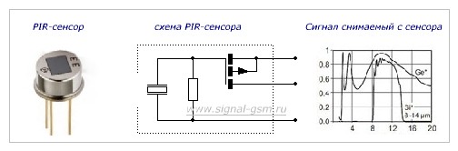 При пересечении человеком сектора, сформированного оптической системой, на пироэлектрическом сенсоре появляются импульсы сигнала.